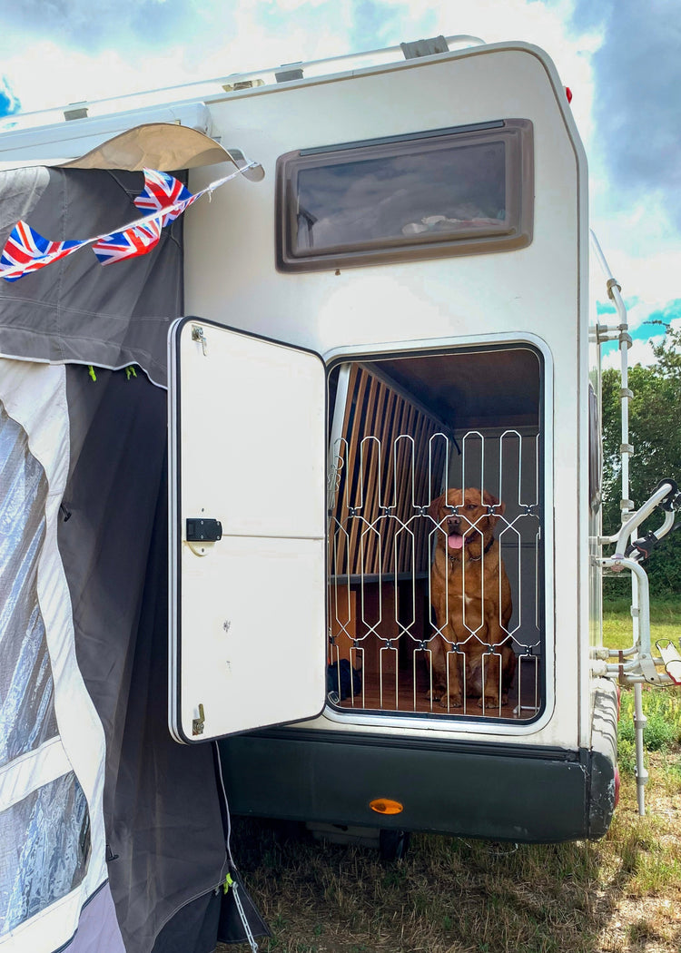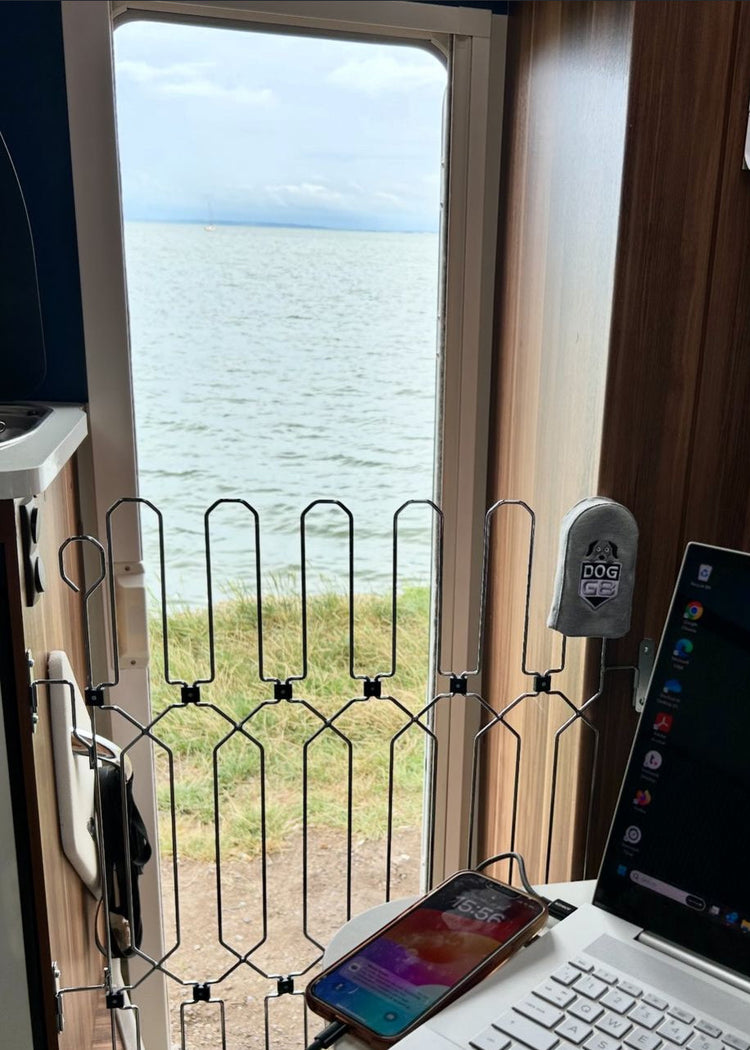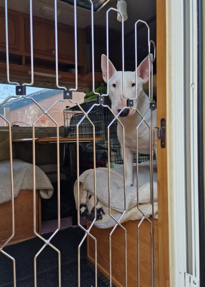 This retractable, portable, and compact dog gate is designed to fit securely to the entrance of any motorhome or caravan, giving you peace of mind while your habitation door stays open.